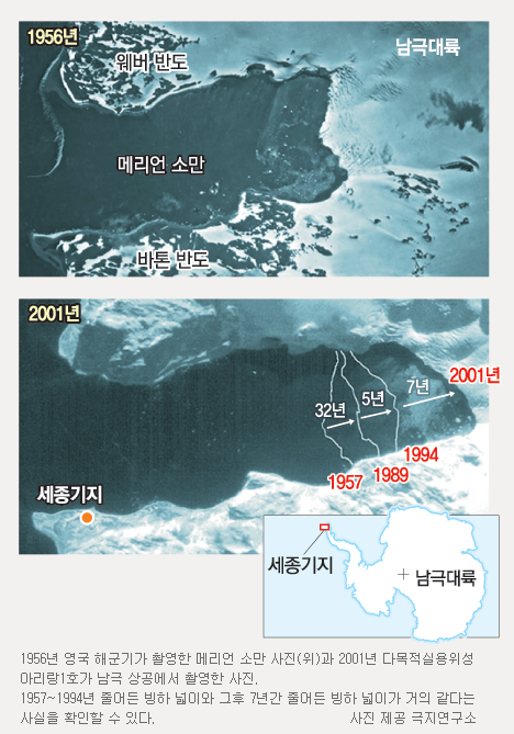 ¼¼Á¾±âÁö ¿ùµ¿´ë°¡ ÀüÇÏ´Â ³²±ØÀÇ ¿Â³È ÇöÀå - ¸Þ¸®¾ð ¼Ò¸¸ ºùº® 50³â µ¿¾È 1km »ç¶óÁ®